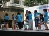 消火訓練の他、会場を通りかかった人に防災情報のチラシを配り、頑張っていました。